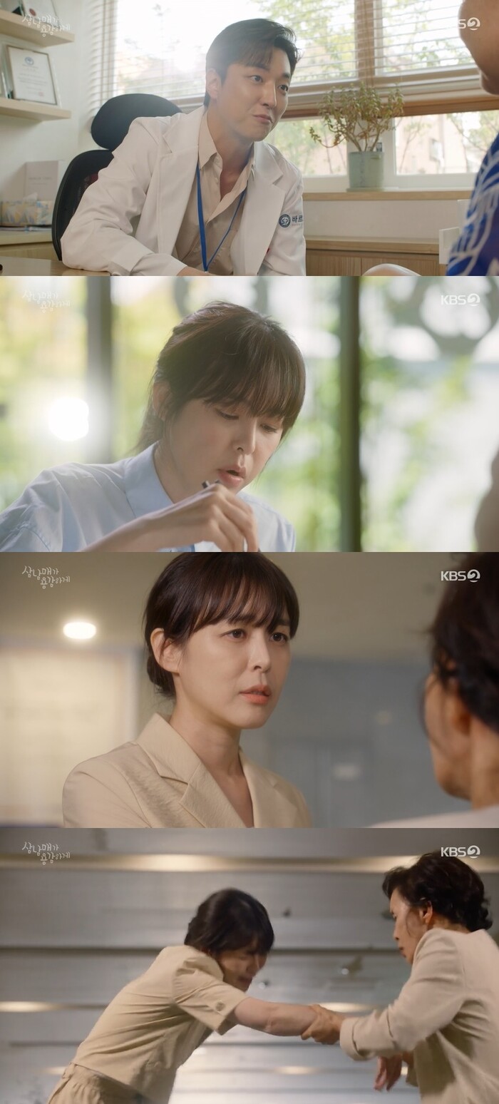 24일 밤 8시 방송된 KBS2TV '삼남매가 용감하게'(연출 박만영/극본 김인영)1회에서는 김태주(이하나 분)가 응급실에서 난동을 피우는 술 취한 환자와 갈등을 빚는 모습이 그려졌다.