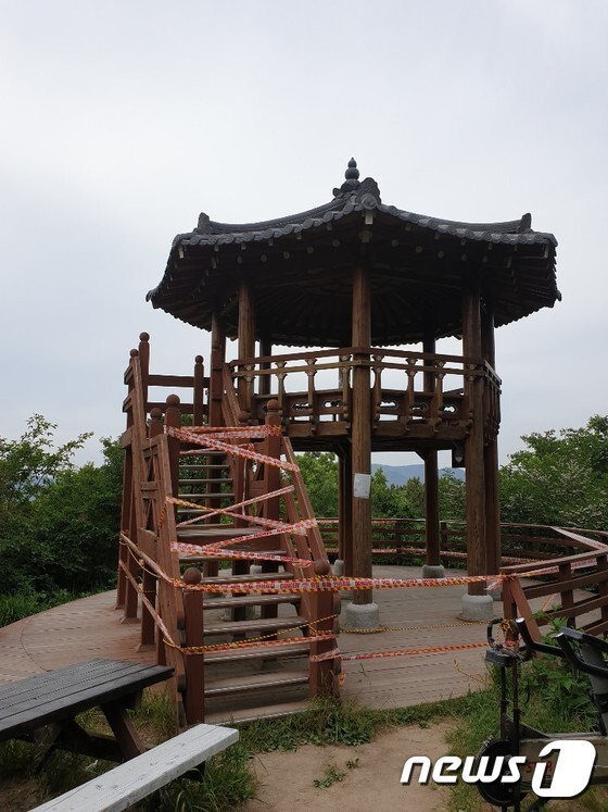 지난 16일 부산 영도구 봉래산에 있는 2층 정자 전망대에 올라선 3대 가족이 마루 바닥이 뚫리며 아래로 추락한 사고가 발생했다.