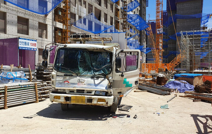 28일 오후 1시쯤 인천시 계양구 서운동의 한 아파트 공사현장에서 타워크레인 구조물이 떨어져 5톤 트럭을 덮쳤다. 이 사고로 트럭 운전자(54)가 다리를 다쳐 병원에서 치료를 받고 있다.