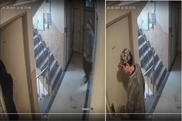 재빨리 네걸음을 걸어 문앞으로 서둘러온 남성은 막 닫히려는 문을 왼손으로 멈춰보려 한다. 다행히 문이 자동으로 잠겼다. 남성은 두세차례 문을 톡톡 노크한다.