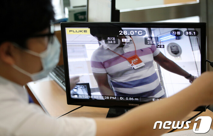 2018년 여름 중동호흡기증후군(MERS·메르스) 의심 환자가 발생한 가운데 서울 한 병원 응급실 입구에 열화상 카메라가 설치된 모습. 뉴스1