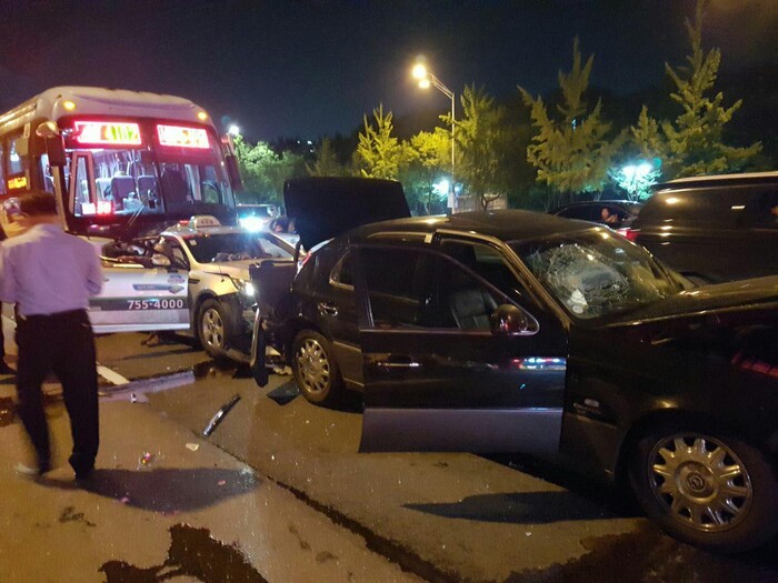 30일 자정을 넘은 심야에 경기도 분당에서 5중 추돌이 발생해 6명이 부상을 입었다.