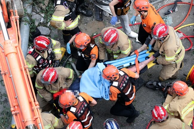 사고가 난 직후 소방당국은 굴삭기 3대를 동원해 차량 탑승자를 구조하려 했으나 잔여물을 들어올리지 못해 추가 굴삭기 지원을 요청했다.