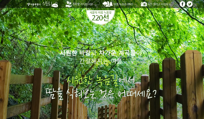 이번에 선정된 녹음길은 서울시 홈페이지(https://www.seoul.go.kr/story/summerforest)와 서울의 산과 공원 홈페이지(http://parks.seoul.go.kr/park), ‘스마트서울맵’을 통해 확인할 수 있다.