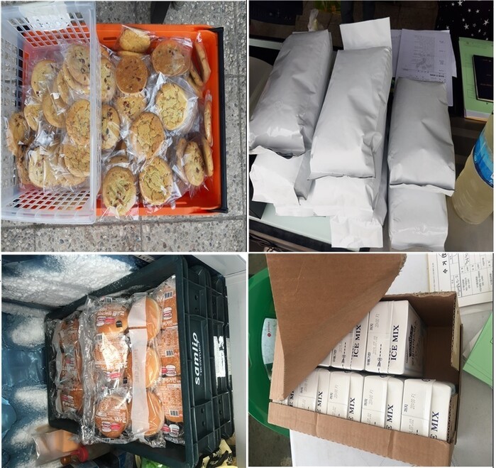 시는 유통기한 경과 및 무표시 제품으로 적발된 햄버거와 원두커피, 쿠키, 아이스믹스 위반제품을 전량 압류해 폐기처분했다.