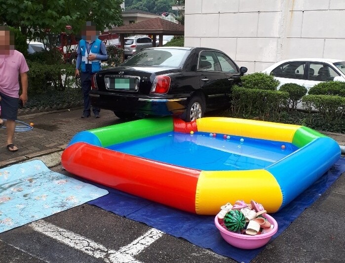 다른 아파트 주민은 “지난해에도 주차장에 어린이 풀장을 만들어 어린이집 아이들이 물놀이를 즐겼다”고 전했다.