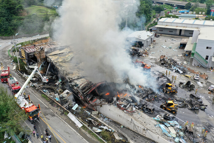 소방당국은 자동화재속보설비를 통해 화재신고를 받고 현장에 출동해 진화에 나섰다. 오후 1시25분 갑자기 공장 지하 1층에서 큰 폭발이 일어났다. 소방당국은 불이 난지 20여분만에 대응 1단계를 발령, 소방헬기 등 장비 59대와 인력 132명을 동원해 진화작업을 벌였다.