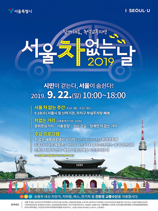 서울시에 따르면 22일을 ‘서울 차 없는 날 2019’로 정해 16일부터 22일까지를 ‘서울 차 없는 주간’으로 운영한다.
