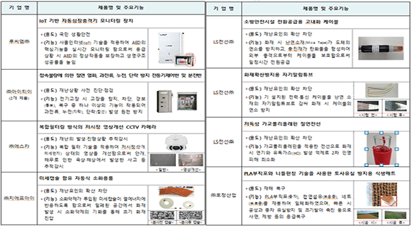 이 밖에도 ‘복합필터링 방식의 저시정 영상개선 CCTV 카메라’ ‘ 소방안전시설 전원공급용 고내화 케이블’ 등이 우수제품으로 인증을 받았다.