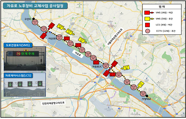 공사는 5일부터 다음달 8일까지 자유로 구산IC~가양대교 구간에서 시행되며 일부차로를 대상으로 교통통제가 있을 예정이다.