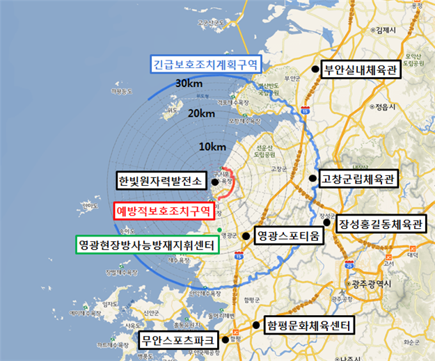 28일 위원회에 따르면 이번 연합훈련은 한빛원전 인근 해역에 발생한 지진(규모 7.5)과 해일 등의 영향으로 중대 사고가 발생하는 상황을 가정해 주민 보호조치, 원전 사고 수습, 방사선 비상진료, 환경방사선 탐사 등의 훈련으로 진행된다.
