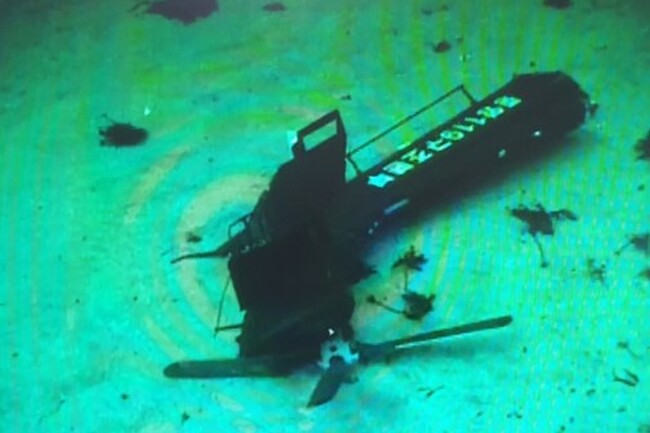 독도 인근 해상에서 헬기 추락 사고로 순직한 소방대원들의 장례를 '소방청장장'으로 하는 방안이 추진된다. 사진은 해군 청해진함 수중무인탐사기(ROV)에서 촬영한 독도 인근 추락 헬기 꼬리 부분. (사진=해군 제공)