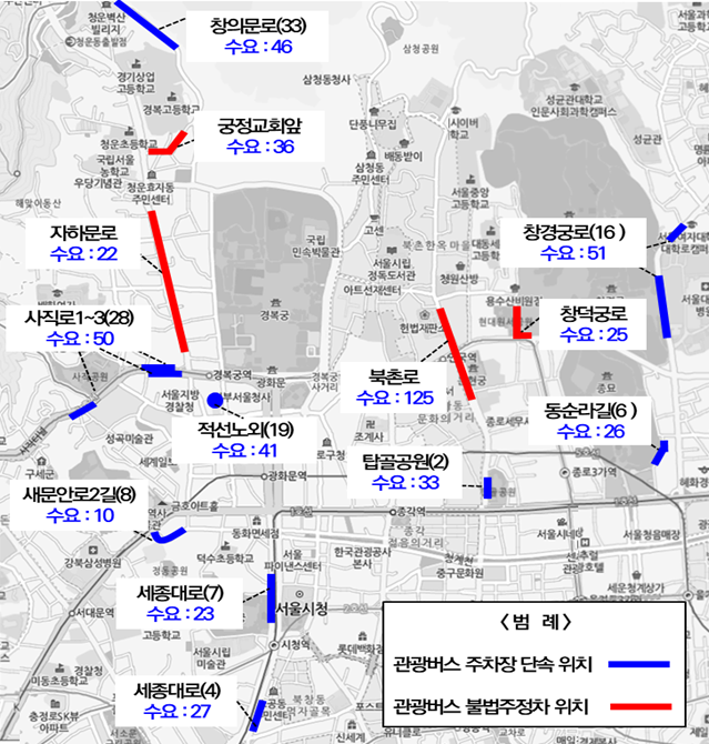 서울시 황보연 도시교통실장은 “도심지역이 대형 관광버스의 불법 주·정차로 인해 차량 소통에 막대한 지장을 주고 있다”며 “특히 공회전으로 대기질도 악화시키고 있어 반드시 단속이 필요하다”고 밝혔다.