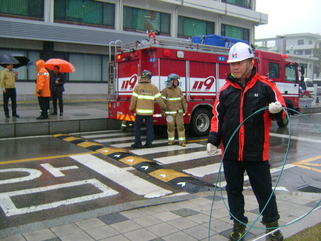 이날 훈련은 도와 KT(주)수원지사, 소방서 등 협력기관이 참가하고 화재신고, 회선사업자(KT) 장애신고, 청내 상황전차 및 관계기관 통보, 인명사고 방지를 위한 접근통제, 화재진압, 전송망 복구 등의 순서로 초동 대응체계 강화에 중점을 두고 실시했다.