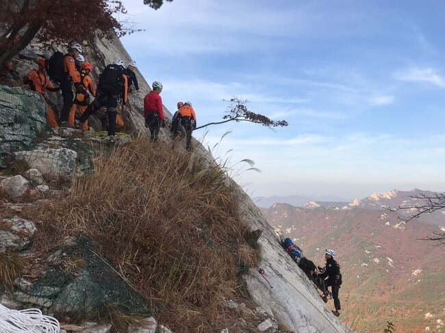 경기도 북부소방재난본부는 북한산 인수봉 일대에서 가을·겨울철 등산객의 조난·추락 사고를 대비한 합동 산악구조 훈련을 25일 실시했다고 밝혔다.