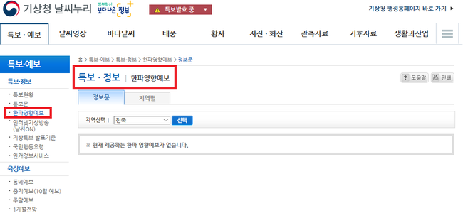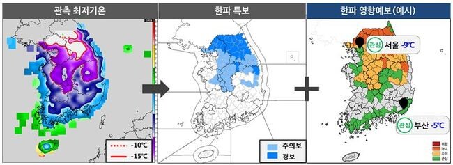 또한, 지역별 기후 특성과 환경을 고려하여 지역별 위험 단계를 설정해 기온이 한파특보 기준에 도달하지 않아도 평소보다 추운 날씨가 지속되어 피해가 예상되는 지역에는 한파 영향정보가 제공된다.