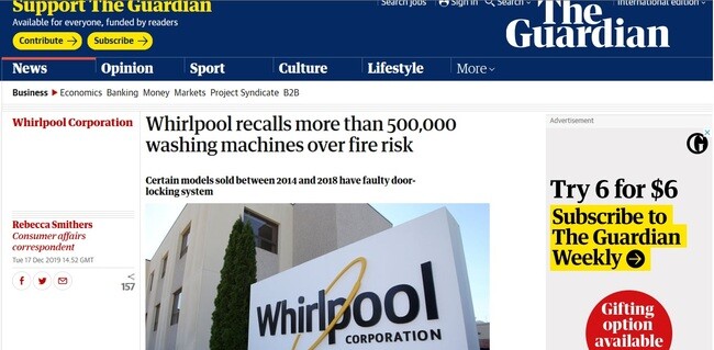 월풀은 지난 6월 화재 우려가 처음으로 제기된지 4년만에 자사 건조기 제품 50만대에 대한 유례없는 리콜을 단행했다.