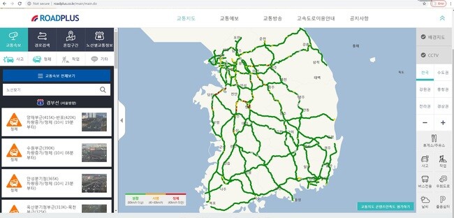낮 12시30분 현재 경부고속도로 서울 방향은 청주분기점 부근 목천 부근과 기흥 부근∼수원 구간 등 53㎞ 구간에서 차들이 밀리고 있다.