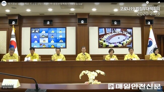 정부는 23일 문재인 대통령 주재로 코로나19 범정부대책회의를 열어 감염병 위기경보를 ‘주의’에서 ‘심각’으로 격상해 대응 체계를 대폭 강화하기로 했다.