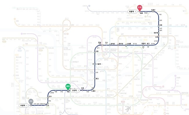 의정부 확진자인 51세 여성은 6일 오후 6시 전철로 구로역에서 회룡역까지 이동해 마을버스를 타고 신곡동 자택으로 귀가했다. 1호선 구로역∼회룡역에는 30개 역이 있다. 이 여성은 7일에는 회룡역 근처에서 남편과 함께 부대찌개로 식사하고 다이소를 들렀다. 8일에는 미용실을 이용했고 이날 오후 회사에서 확진자와 접촉했다는 문자를 받았다. 9일 마을버스를 이용해 성모병원 선별진료소를 찾았다.