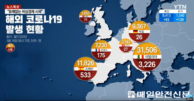 해외에선 악화일로다. 이탈리아가 전날 대비 3526명 증가해 확진자가 총 3만1506명이다. 사망자는 345명 증가로 누적 사망자는 2503명이다. 이탈리아는 확진자 수와 사망자 수가 중국에 이어 세계 두 번째다.