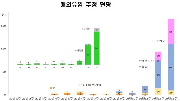 이날 해외에서 유입된 신규 확진자는 13명으로, 25일 51명, 전날 38명에서 줄었다.