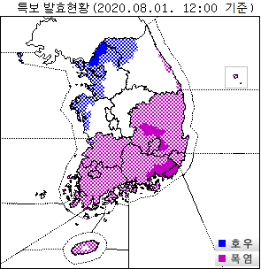 강원동해안과 남부지방, 제주도에는 폭염특보가 발표된 가운데, 월요일까지 낮 기온이 남부지방을 중심으로 30도 이상, 특히 강원동해안과 경상내륙, 제주도는 33도 이상 오르는 곳이 많겠다. 일부 지역에서는 습도가 높아 체감온도가 33도 이상으로 오르면서 매우 덥고, 열대야가 나타나는 곳이 있겠다.
