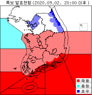 제주도 전해상, 서해남부해상, 충남남부앞바다, 남해상과 동해남부해상에 태풍특보 발효 중인 가운데 제주도와 남해안에는 최대순간풍속 약 130km/h(약 36m/s) 내외의 강한 바람이 부는 곳이 있다.