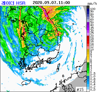 [매일안전신문] 제10호 태풍 하이선이 7일 오전 11시 현재 경북 울진 남쪽 약 70㎞까지 접근했다.