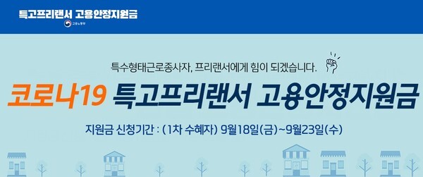 [매일안전신문] 1차 긴급고용안정지원금을 받은 특수형태근로종사자(특고)·프리랜서 45만명이 추석 전에 2차 고용안정지원금을 받은 데 이어 추석 이후에는 1차 긴급고용안정지원금을 받지 않은 특고 및 프리랜서 20만명이 지원금을 받는다. 오는 12일 접수를 시작한다.