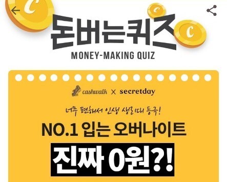 '시크릿데이 생리대 입오버' 캐시워크 돈버는 퀴즈 문제가 변경되면 정답이 바뀔 수 있다.