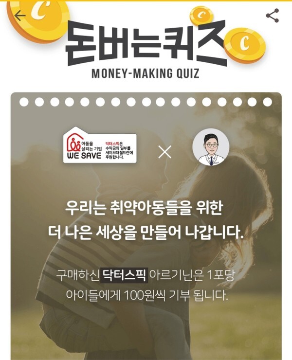 [매일안전신문] 캐시워크 돈버는 퀴즈로 ‘닥터스픽’ 관련 문제가 제시됐다.
