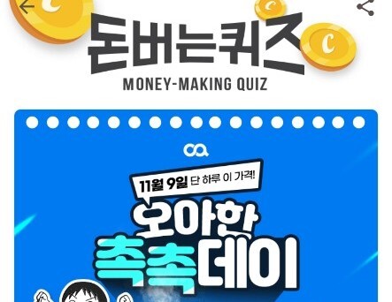 '오아한 촉촉데이' 캐시워크 돈버는 퀴즈 문제가 변경되면 정답이 바뀔 수 있다.