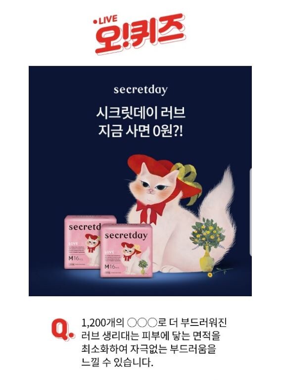 25일 10시 오 퀴즈 문제는 " 1,200개의 000로 부드러워진 러브 생리대는 피부에 닿는 면적을 최소화하여 자극없는 부드러움을 느낄 수 있습니다."이다.