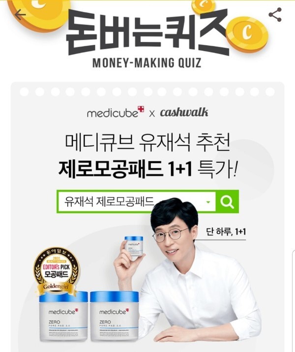 [매일안전신문] 돈버는 퀴즈 메디큐브 유재석 추천 제로모공패드 1+1 특가로 3일 오전 문제가 제시됐다.