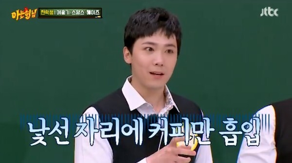 이홍기는 "그게 AB형 연예인 모임이었는데 홍대로 가니까 유명 래퍼들이 있더라"며 "난 그때 신인이었고 무서워서 아메리카노만 먹었다"고 말했다.