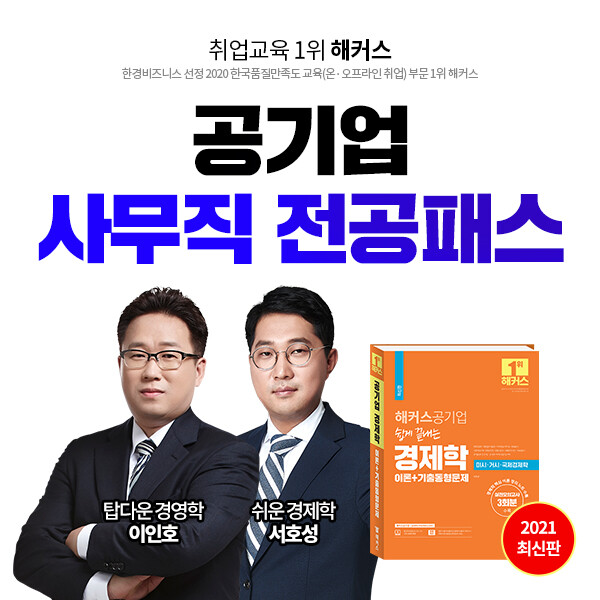 또한 2021년 최신판 해커스공기업 경제학 교재는 깔끔하고 상세한 구성으로 이루어져 있고, 교재와 인강을 활용한다면 경제학 비전공자도 무리 없이 학습할 수 있다.