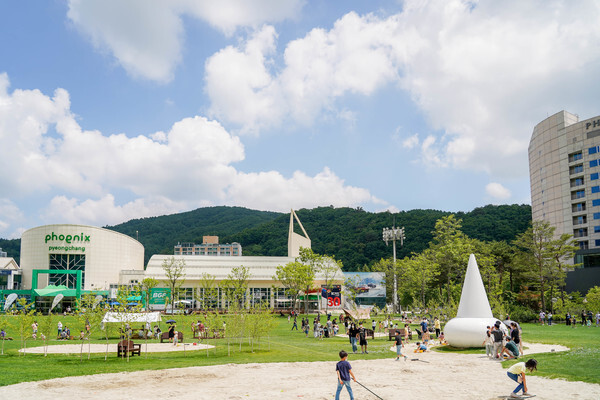 포레스트 파크의 메인 공간을 차지하는 잔디 광장에는 다양한 자연 놀이터가 조성되어 있다. 이 중 모래 놀이터는 아이들이 가장 좋아하는 놀이 공간으로, 이 곳의 모래는 휘닉스 평창에서 운영 중인 회원제 골프장 휘닉스CC의 실제 벙커에 사용하는 고급 모래를 활용해 조성했다.