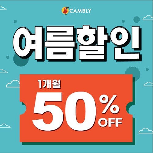 이번 행사는 장기 플랜 등록 전 1개월 간 충분히 화상영어를 체험해볼 수 있다, 첫 한 달 수업료는 50% 할인하며 성인 대상 캠블리클래식과 어린이를 위한 캠블리키즈 모두 해당된다.
