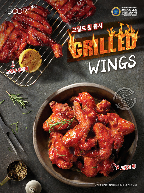 부어치킨이 신메뉴 ‘그릴드 윙’과 사이드 메뉴 3종을 출시한다고 밝혔다.