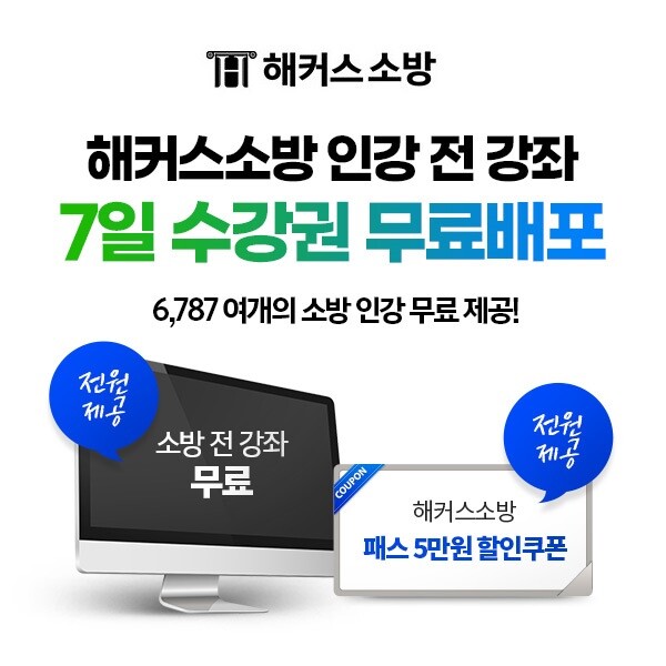 이에 해커스소방이 소방 인강 전 강좌 7일 수강권 무료 배포 이벤트를 진행한다고 밝혔다.