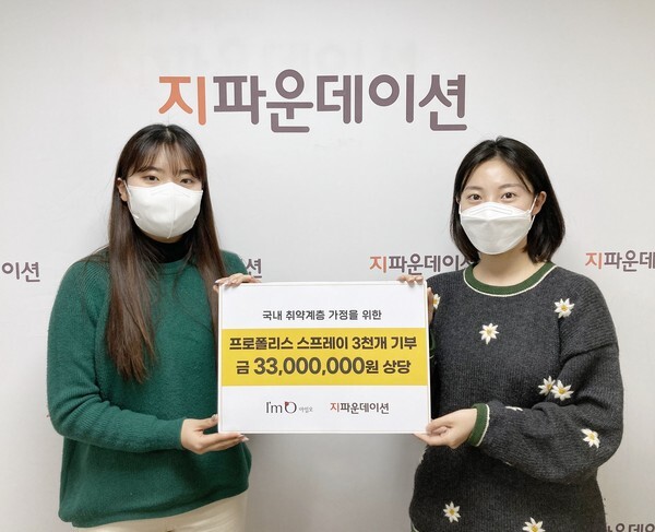 여성건강케어 브랜드 ‘아임오(I’mO)’가 연말을 맞아 지난 21일, ‘아임오 프로폴리스 스프레이’ 3000개를 기부했다고 밝혔다.